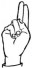 На ћирилици написано ЈЕЛЕНА ЛУДОШКИ састоји се из 13 слова [?]. Исписано ћириличном једноручном азбуком за глувонеме: